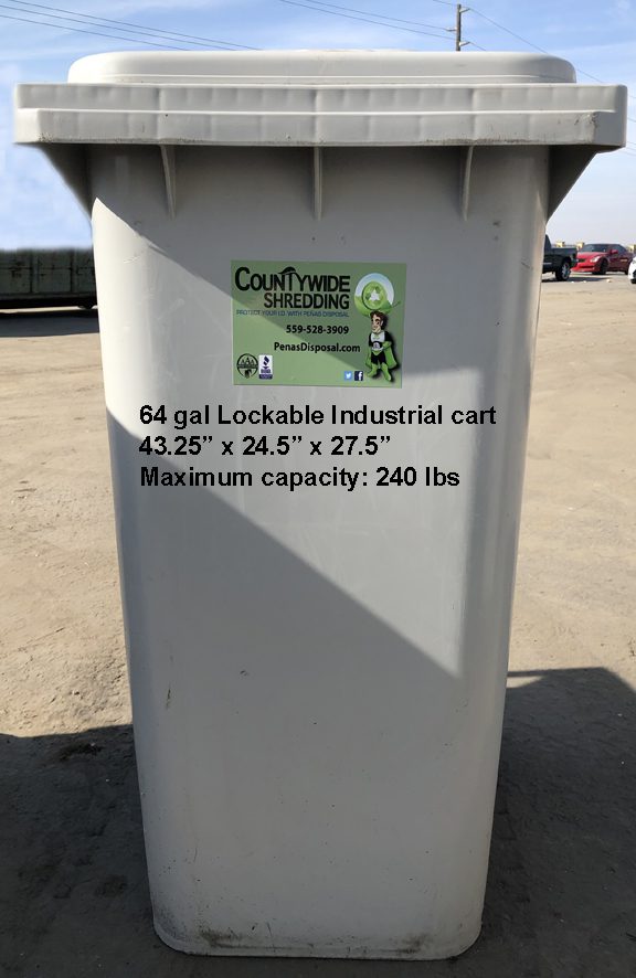 Whether you are doing a purge, need us on-call, or need shredding on a schedule – we are the company for you! If you are looking for scheduled shredding on a weekly, monthly or quarterly basis – we will work with you to design a solution that best suits your business needs. We have lockable shredding carts in 32, 33, 64 or 96 gallon size to select from – you pick the size that works best for your environment.